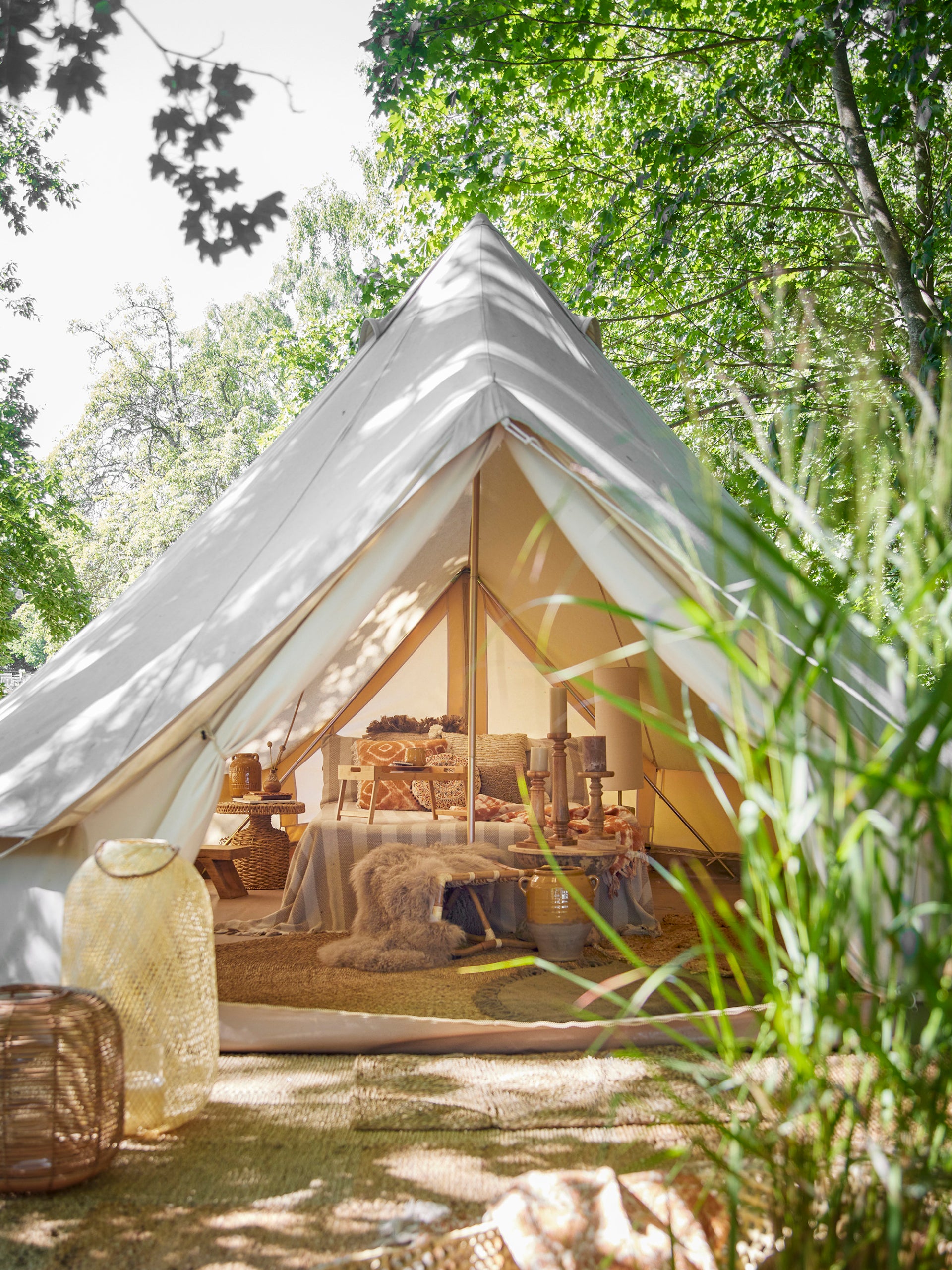 Die Nei Laterne ist aus Naturmaterial mit Glaseinsatz für eine Kerze. Die Laterne hat ein dekoratives Design, das das Licht weich und gemütlich macht - perfekt für die späten Sommernächte!